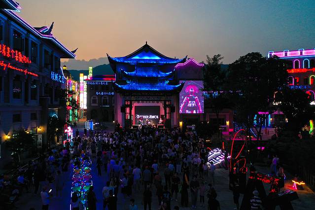 宁波 溪口 应梦里景区是新晋的网红打卡地,只有晚上才开门营业哦,主打景区各种精彩表演,辅以街区和赛博朋克灯光视觉,一到晚上这里就热闹非凡,人山人海。