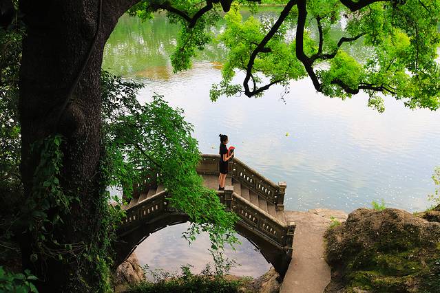 放慢脚步沿着剡溪的小街道慢慢地逛,这里的景色水绕山环,景色秀丽,是华东旅游主干线上的一颗璀璨明珠。走过桥,在对面可以看到景区的景色,特色是一到秋天的时候对面的树味就变成了金黄色,那个时候的景色更是美。
