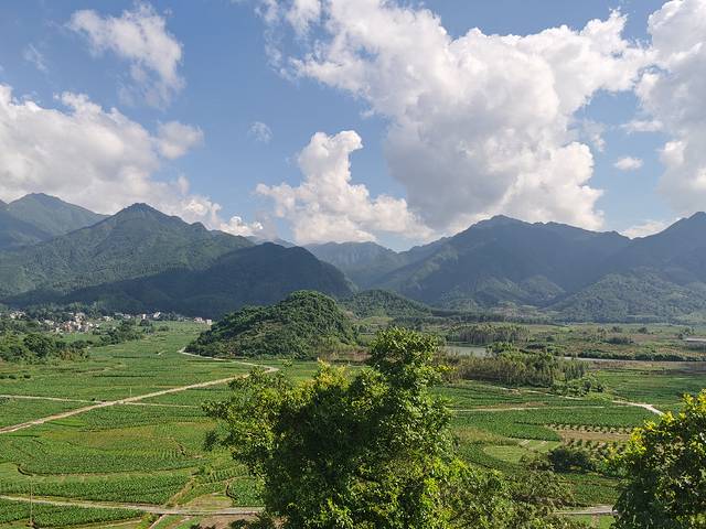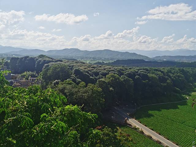 远处是绵延不绝的青山,天空是湛蓝的,白云在青山绿水间游走,让人心旷神怡,好久没有看到过如此纯净的天空,如果不是温度有点高,还以为到了云南。