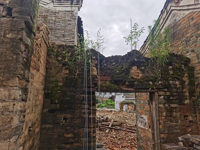 大爷将我带到山脚下一栋大屋前,告诉我这是以前县长的房子。虽然院墙和门楼都已经倒了,但房屋的主体还在,典型的湘南地区民居构造,含上下两层,并建有高大的马头墙,当年显然是一座深宅大院,但依现在的状况,估计过不多久就会倒了。