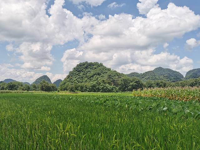 贺州和桂林的山水很像,都是典型的喀斯特地貌,岔山村当然也不例外。走进这个古村,在秀美的山间全是绿油油的稻田,只是夏日的阳光,晒得有点厉害。古村位于山脚下,沿着古道两侧而建,旁边还有一条美丽的小河,是一个依山傍水的好地方。