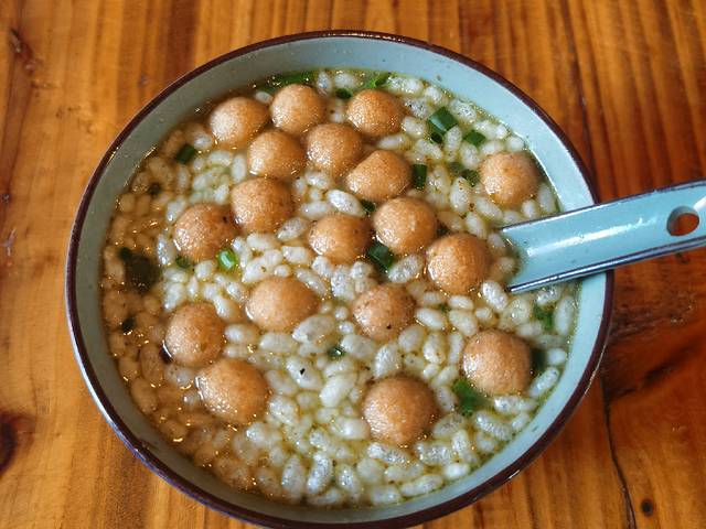 随意找了一家小店进去,要了一碗当地的油茶,有点像湖南的擂茶,属于咸口,十分解暑。老板娘又推荐了他们的梭子粑,旁边的一位顾客还热情的请我尝尝他刚买下的。盛情难却,先要了一咸一甜两个先试试,没想到味道还不错,干脆打包一份带回家。