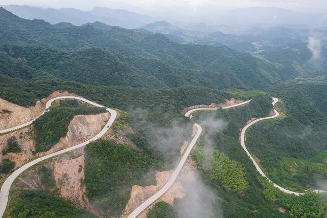 行驶在大别山风景道,一场雨后,在山里穿云破雾,如行驶在仙境中一般。红领公路这一段山路崎岖弯折多变,真实体验了什么叫山路十八弯,这便是自驾的乐趣。