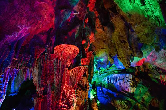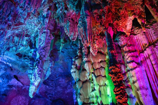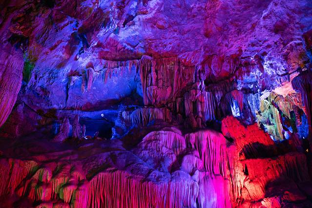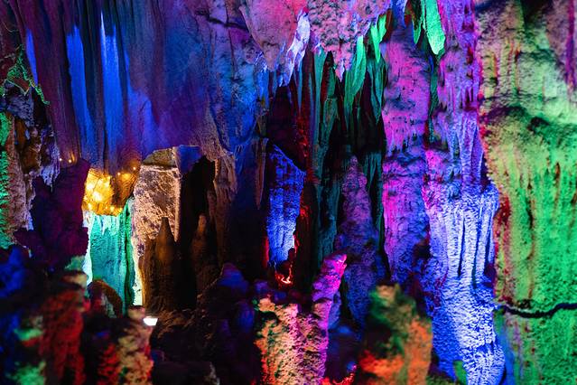 在灯光的映衬下,这些钟乳石真的像仙境一般,层次丰富,让人有无数想象空间。