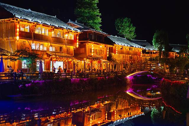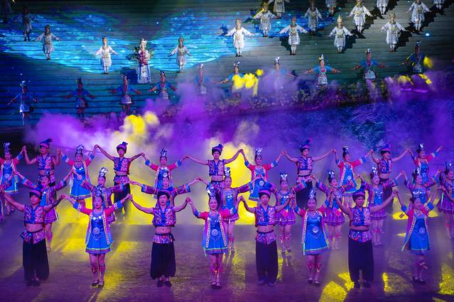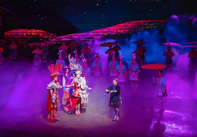 这里每晚8:00上演的《坐妹》演出也是游客必打卡的项目之一,浪漫的爱情故事、绚丽的民族舞蹈展现了侗族风情,非常值得一看。