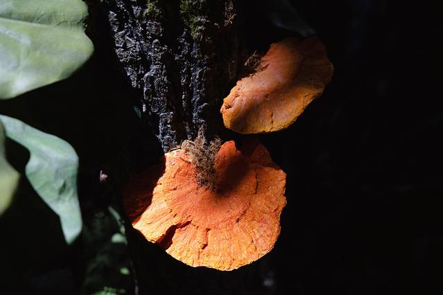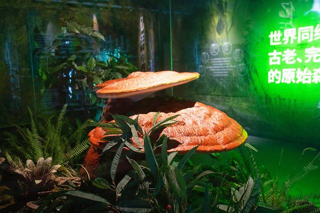 植物和动物都是防真的,但在这里能看到的灵芝都是真的。