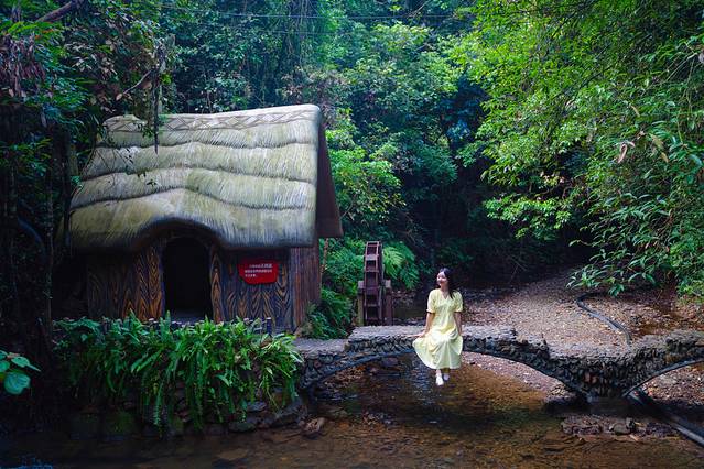 整个园区复刻了九万大山的自然环境,走在其中就像穿越在了原始森林一般。