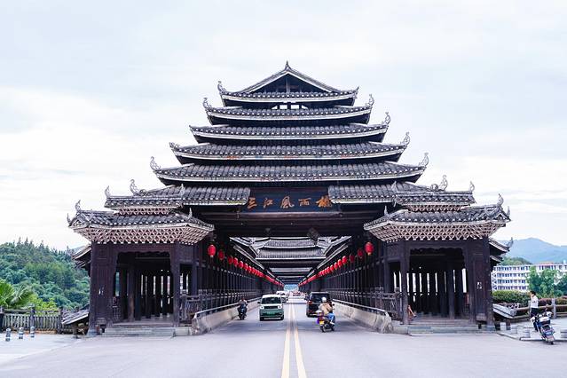 坐观光车到达的第一站,便是程阳八寨的核心景点“程阳桥”,作为侗族最特色建筑之一,这座程阳桥始建于1912年,是世界上规模最大的风雨桥。