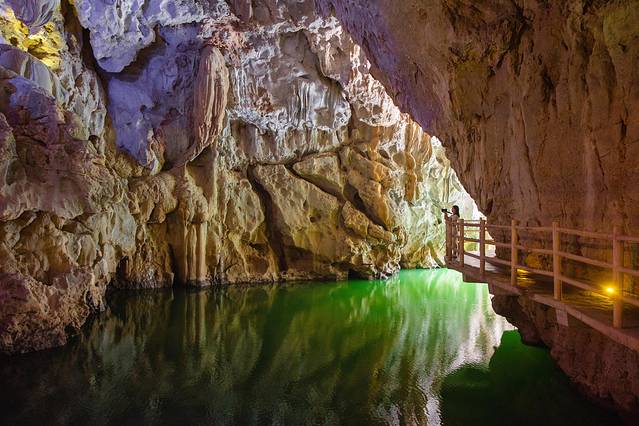 游客可以租一艘游船慢慢来游览这个溶洞,走在其中,真的有种盗墓笔记的即视感呢。