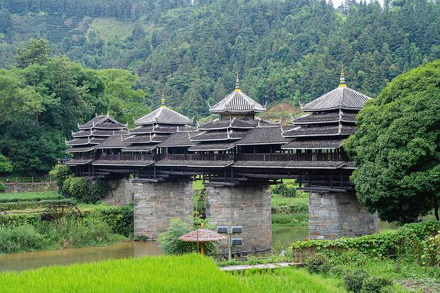 而风雨桥是集桥、廊、亭于一体,造型优美,是极具侗族民族特色的建筑。