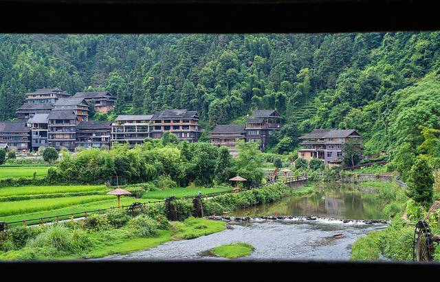 梦鸣苗寨依山傍水,风景秀丽,很适合拍照打卡。