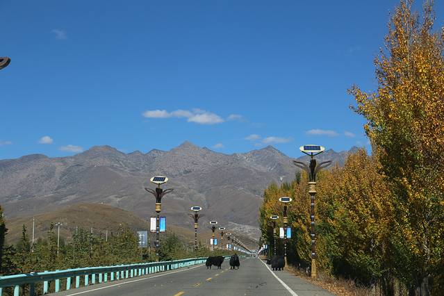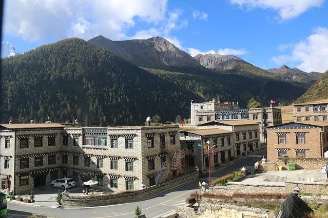 早上10点半,从俄亚村出发,前往稻城亚丁。往稻城县吉呷镇25公里左右,吉尔同村有一个中石油加油站。经吉呷镇,各卡乡,我们正式进入了亚丁风景区,沿途彩林色彩斑斓,秋意渐浓。途经俄初山垭口,海拔4162。从俄亚纳西族出来,一路皆是藏族,感觉这里的藏民生活比较富足,房子建得比我们在西藏看到的藏居漂亮雄伟得多。全程135公里,路况较好,偶有落石。于下午2点半抵达稻城县香格里拉镇,海拔2966。入住Holiday Inn。今晚将在这里好好休整,吃好睡好,明天一早上亚丁景区。