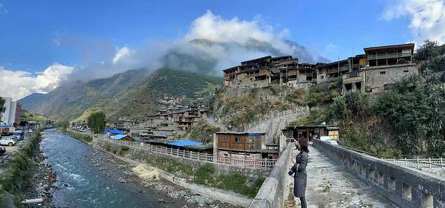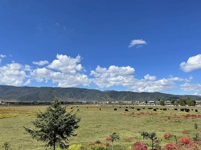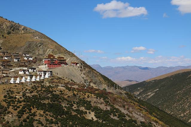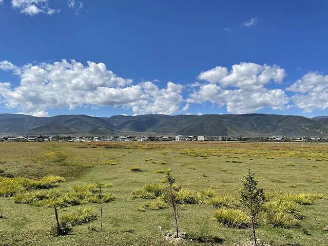 早上在酒店与小米拉一起玩了好一阵,小姑娘是酒店老板沈疯子的女儿,聪明伶俐,乖巧可爱。从亚丁景区下来香格里拉镇,我们匆匆吃碗面条便出发前往乡城县,这个早上才听阿甜提起的地方。227国道转549国道,一路风光无限好,原来最美的风景始终在路上,我们所经停的色拉花海,万苗杨林,红草地,清澈河谷,五色彩林,恍若仙境,途经的地方有桑堆镇,沙贡乡,下午5点到达非常具有特色的乡城县,全程182km,耗时5个半小时,入住扎西大酒店。这是个依山而建的县城,所有的房子都是白色的藏族民居,显得颇具现代感。一条香巴拉大道自北向南,贯穿整个县城。街道自东向西攀援而上,甚是陡峭。整个县城没有红绿灯,十分整洁有序,祥和静谧。在这里还看到了藏族的广场舞。