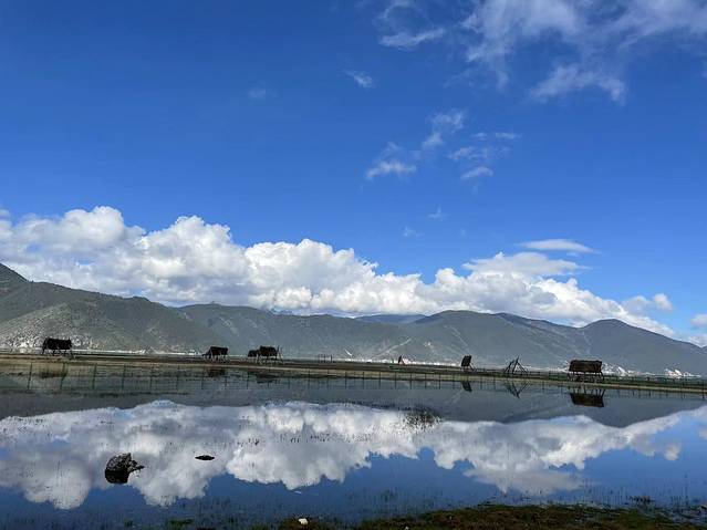 早上前往纳帕海继续昨天的水上公路行,我和江小姐轮番驾车,玩得甚嗨。但是如果是底盘较低的轿车不建议在水上公路驾驶,随时可能熄火,还是安全第一哈。接着去依拉草原游玩,拍湖中倒影。中午前往小中甸吃老王家牦牛肉,这个店是纳西朋友阿甜推荐的,一般只有本地人知道,几乎没有游客。很赞,味道极佳。下午前往阿甜家,阿甜开车下山来接我们,夫妇俩热情好客,留我们在他家晚餐,在他家门口可以远眺玉龙雪山。晚餐后赶往丽江古城,全程260公里,共计行车9小时,入住古城安隐客栈。