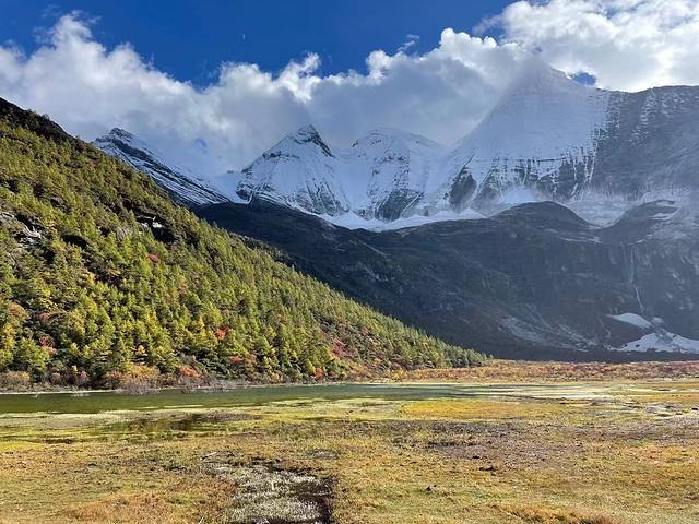 一早6:15起床,酒店早餐后7点半出发前往亚丁景区,车只能停在景区外面停车场,然后坐景区大巴上山,入住亚丁村二号站知白艺术酒店,海拔4100m,这个酒店是亚丁村条件设施较好的酒店,趟在床上就能看到央迈勇和夏洛多吉神山。放下行李后坐车前往扎灌崩,然后徒步一段路去坐电瓶车到洛绒牛场,洛绒牛场便是电影《从你的全世界路过》的取景地,从洛绒牛场徒步到牛奶海五色海来回10km,这是官方数据,但是山路弯弯曲曲,个人感觉起码15km+,我们往返耗时大约9小时。前半段路较平坦,后半段山路崎岖,有陡坡,陡台阶,特别是最后1km,随着海拔的上升,氧气越来越稀薄,真的是对体力和耐力的极大挑战。站在五色海边,仙乃日神山近在咫尺,离天是那么的近,感觉离尘世的喧嚣似乎很远了。但因自然条件摆在那,需量力而行。