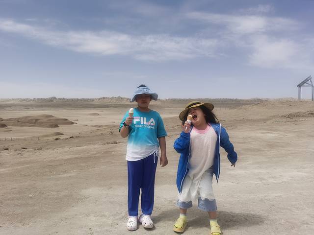上午九点从水上雅丹退房 ,先去了火星营地,我喜欢这里,满目的沙丘在阳光的照射下变得耀眼,路两边仿佛矗立着许多的金字塔、狮身人面像、巨型大龟、骆驼,大象等等,让人目不暇接的惊叹,随着车的颠簸摇晃恍惚间置身于另一个奇幻星球。出了火星营地,我们开始追赶另一部同行的车。此刻3点左右,远处的天空好像盖了一床厚厚的被子,灰黑色的云层低低地压了下来,我以为只是要下雨了,从未料到,我会经历穿越这辈子最恐怖的恶劣天气,九级沙尘暴。当遮天蔽日漫天飞舞的黄沙在狂风的伴随下扑面而来,眼前的一切变得混沌,我们什么也看不见,只能感觉冰雹噼里啪啦的打击着我们的车窗和车顶,司机前方的能见度不到一米。我们打开所有的应急灯缓慢的前行。土生土长的西北人司机说他长这么大,这是第二次经历如此大的沙尘暴。更让他也觉得恐怖但是以往的沙尘暴持续时间很短,而这一次的沙尘暴整整两三个小时都没有停。我们这部车还有两个小孩,我担忧的心已经提到了嗓子眼。狂风裹挟着黄沙,将我们的车吹得摇摇晃晃,我们好怕后面的车撞上我们追尾,也怕突然迎面开来一辆失去方向感的车。幸好我们的司机是经验非常丰富的年轻小伙子。只见他伸长着脖子瞪大眼睛,头几乎贴着窗玻璃,看着前面的路。到冷湖镇不过90公里的距离,我们两个小时都没有开到。这里是无人区,手机基本上没有信号,我的担忧在升级。