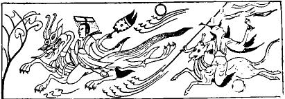 西南第二抹角石壁画乘龙仙人摹本(图片来自(吉林集安五盔坟五号墓藻井壁画新解)