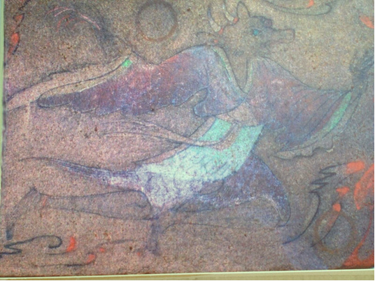 1、工笔重彩与石壁做画:两墓壁画均采用工笔重彩的方法直接绘在平整而略的斑驳的石壁上,形成浑厚、凝重、历尽沧桑之感。这与早中期壁画完全不同,吏具有装饰风味。在画面内容上,市俗生活已完全消失,全部被四神和神仙、佛教题材所代替(这也从侧面反映出高句丽经过几百年的编制,其社会矛盾十分突出,使上层贵族阶层开始寻求用宗教来解决矛盾)。