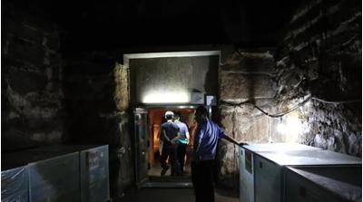 清理时发现,封土下面而列一圈石块,共有九块,都一米见方,墓门向西南。地宫分南北二室,各有墓门甬道。