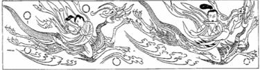 伏羲与女娲像摹本(图片来自(吉林集安五盔坟五号墓藻井壁画新解)
