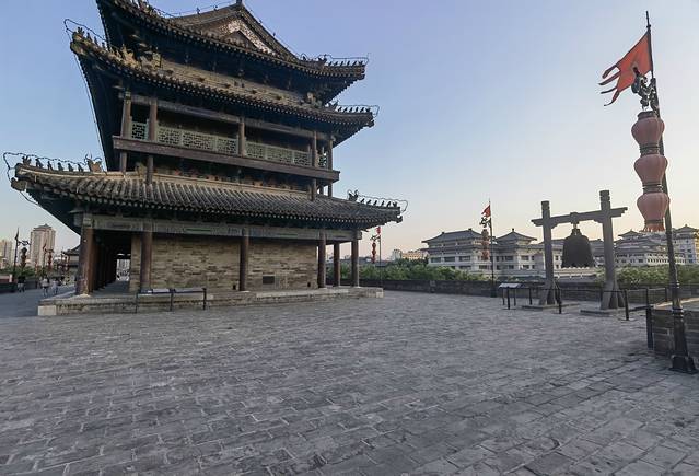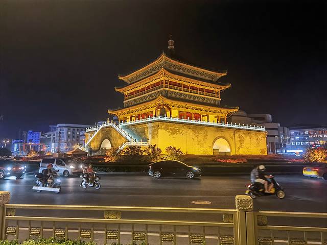 西安钟楼是国内规模较大,保存完整的一座钟楼,始建于明洪武十七年(公元1384年),钟楼处于西安的中心地带,是古城的地标之一,以它为中心辐射出东、南、西、北四条大街并分别与西安城墙东、南、西、北四门相接。