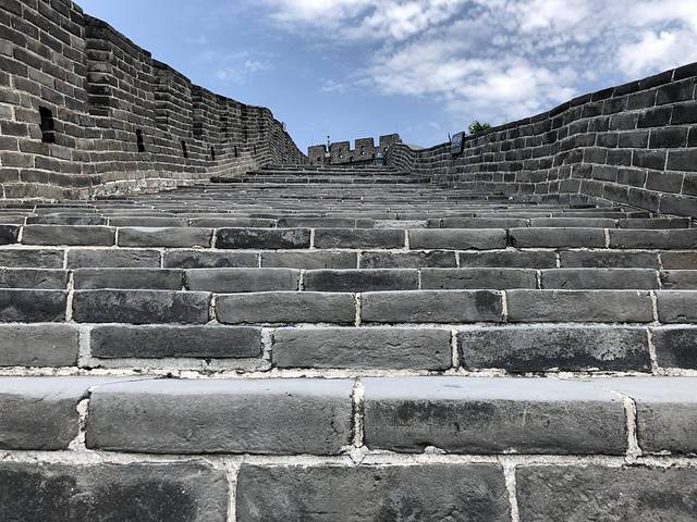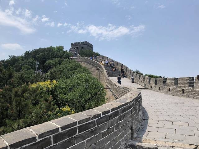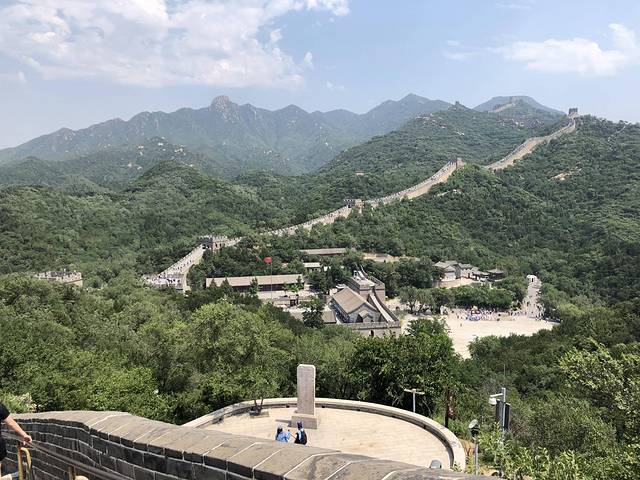 达岭长城有两条路线,南城和北城。南城是往返路线,要原路返回;北城是环形路线,不用原路返回,好汉坡在北城,可以直接下到游客中心。我们就是这样走的。我们先爬的南城,人相对少很多,爬到顶可以在烽火台里休息一下,外面很热,但是在烽火台里挺凉爽的,又有微风吹来非常惬意。