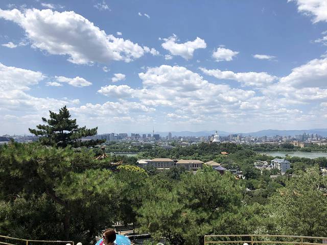 而向不同的方向看,能看到很多经典的建筑物标志,譬如北海公园的白塔.