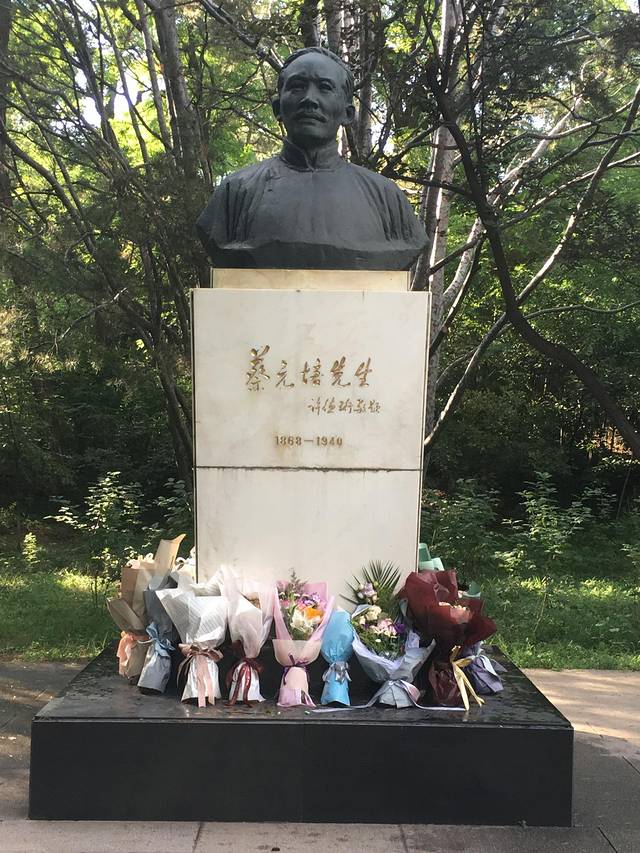 注视着蔡元培先生的雕像,心想:八年后儿子能否成为他的弟子,北大的精英……