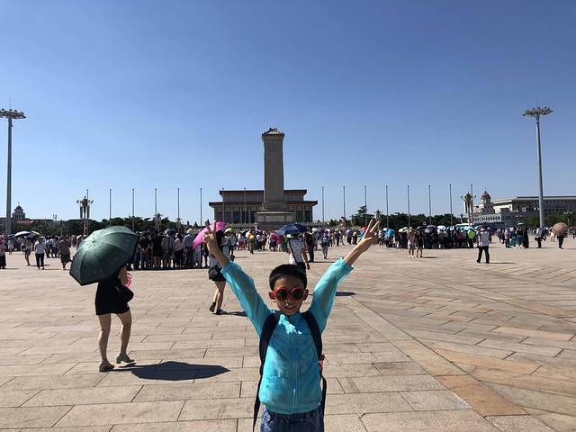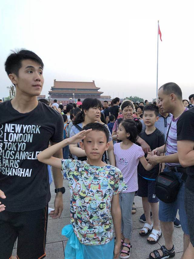 因为起的太早,所以把观看升旗仪式放在最后一天,但刚好是“七一建党节”,完全是拼爹啊!这个时候个子高的老爸就占绝对优势啦!