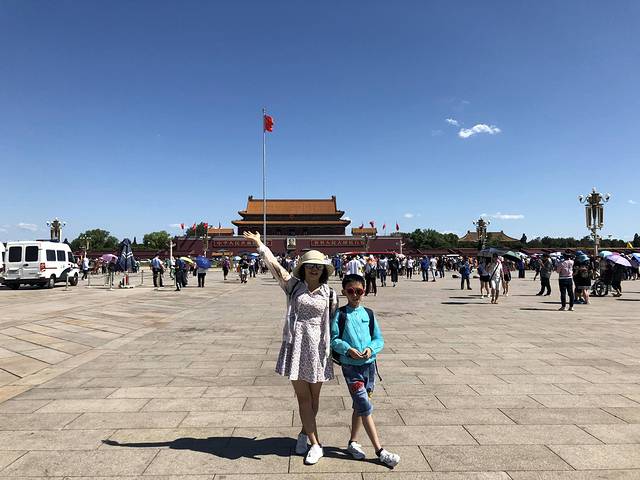 可以上城楼从另一个视角看天安门广场(到城楼下买票就可以了),结果在维护,这次没有办法带儿子上去了。