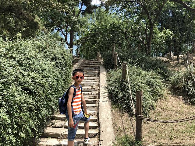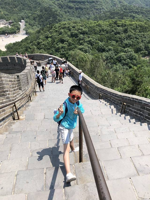 爬完北城本来是要坐索道的,结果要等两个半小时,最终决定从旁边的小路走下来。儿子今天非常棒,自己走完了南北长城的全程,一定要奖励一个奖牌。