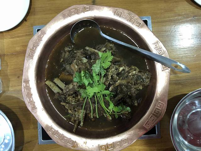 羊蝎子火锅,其实就是黄焖羊肉,但不是纯肉,而是脊椎骨(更多的都是脊椎骨,有少量的羊排骨)。我们还点了其他的配菜,实在是太累、太饿了忘记拍照啦!味道一般,感兴趣的可以尝一下。