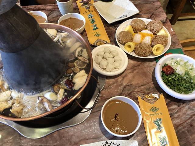 土锅、清水加一些菌类和食材就可以涮肉了?而且蘸碟没有辣椒?一开始我们心里挺忐忑的......