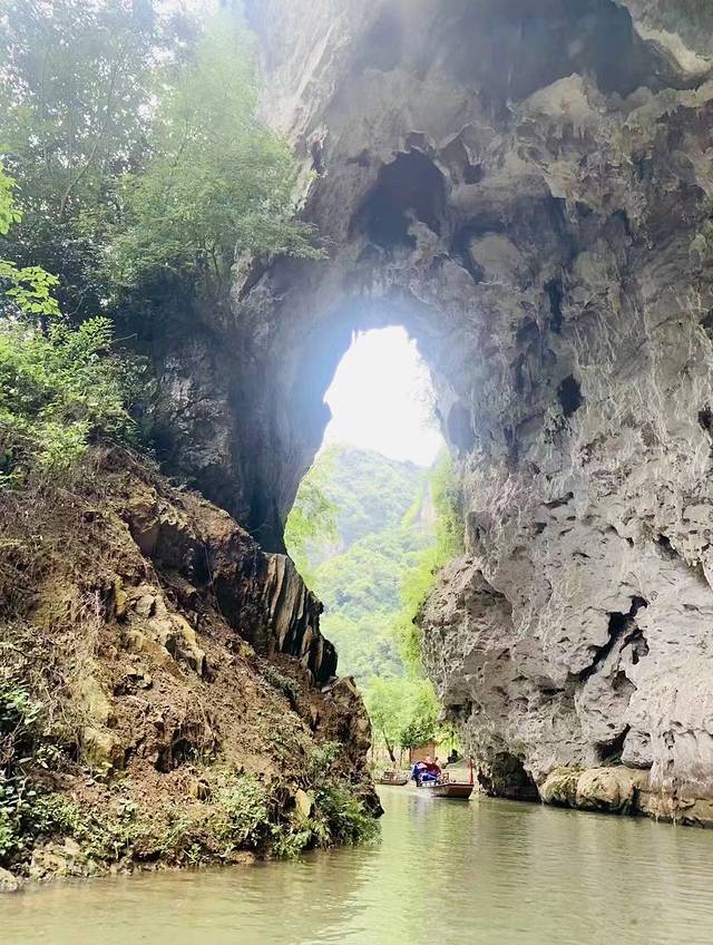 我們一路自駕過去,路途遙遠,路況不佳,夜幕降臨才到達。當時應該在建設指示牌不是很清楚,客棧老闆一路給予我們幫助,找到停車場,新建的很大很寬敞,遊客中心也很現代化,以至於我一直覺得就跟任何一個普通景點沒差。收拾簡單行李,直到客棧老闆把我們帶到船上,穿過洞口的一剎那,明白了“坝美”的意思,壮语:森林中的洞口。仿佛穿越到了另一個世界,與“遊客中心”和“停車場”大相徑庭。远处的青山绿水被山洞掩住,若隱若現;洞的那一边,若即若離的山,清清的泉水绕着小村庄,嘿,还记得陶渊明的诗么?林尽水源,便得一山,山有小口,仿佛若有光。便舍船,从口入。初极狭,才通人。复行数十步,豁然开朗。土地平旷,屋舍俨然,有良田、美池、桑竹之属。阡陌交通,鸡犬相闻。其中往来种作,男女衣着,悉如外人。黄发垂髫,并怡然自乐。正是这番景象!美哉~