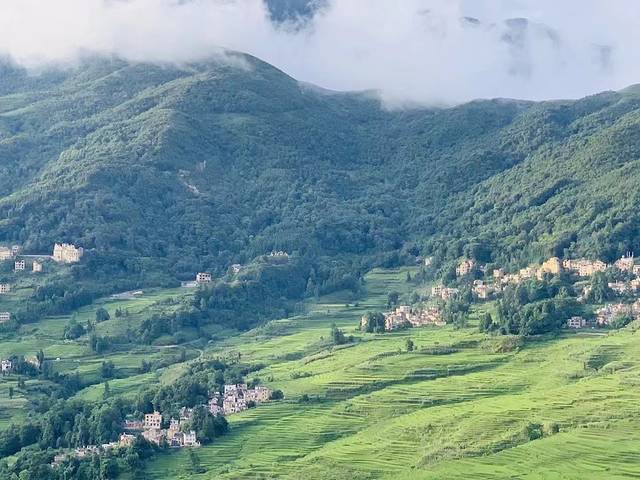 云阳梯田相较与之前见过的梯田,其壮观程度是前所未有的,一片一片,好似徜徉在绿色海洋。清早起床在山头云雾缭绕间,突然想起柳宗元的诗句,日出雾露余,青松如膏沐。梯田有好几个景点,每一处都很棒,比如老虎嘴,多依树、爱春蓝等等,我最感兴趣的应该是爱春蓝,自由散步在田间,鞋子是穿不上的(拖鞋除外),有哈尼族的人会跟我们打招呼聊天,很亲切很友好。