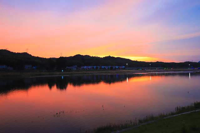 慢慢地晚霞染红了天边,夕阳西下后,美丽的晚霞让人流连忘返,在溪边,不听话的晚霞倒映在溪水上构成了一幅美丽的彩色画。自驾大别山风景道的路上每天晚上都能遇到如此美丽的夕阳和晚霞。这一刻,她的美丽让我忘记了身边的一切。