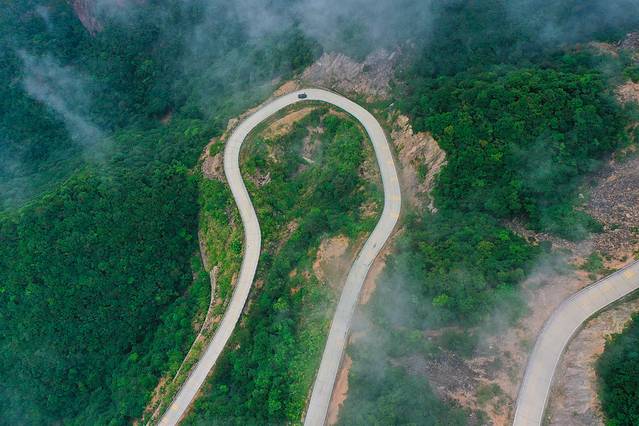 自驾大别山风景道红岭公路马鬃岭段,地处大别山北麓、金寨县西南部,森林覆盖率95.9%,境内最高峰1671米,景区入口海拔600米以上。中国红岭公路因金寨独特的地形地貌特征,形成了独具特色的线路,它由500里仙风道古自驾线、红色征程线和马丁公路三部分组成,自然条件得天独厚,是一座原始、古老、完美的绿色宝库。