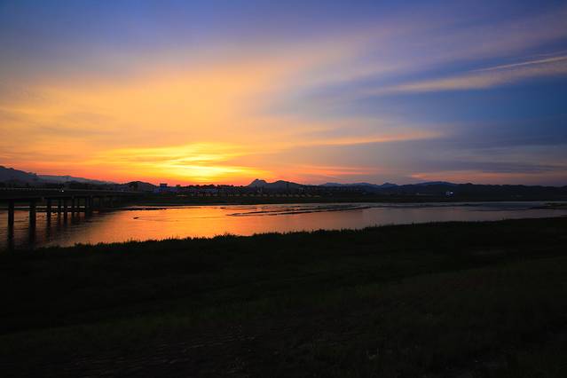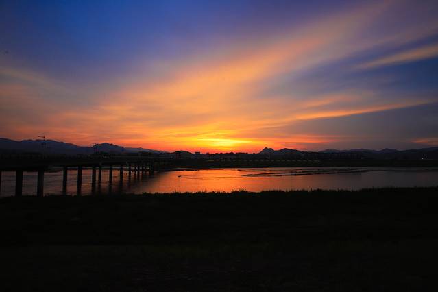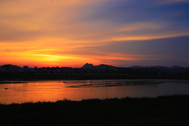 傍晚,太阳慢慢落山,自驾大别山风景道来到了六安霍山县,正好遇到夕阳西下,我们把车停在黑石渡大桥旁边,天边出现一道灿烂无比的霞光,刹那间,天空都被染成了深红色,就像是一片波澜壮阔的红色海洋,十分壮观,此时,就像是一朵硕大的红牡丹在天边怒放,尽情的喷芳吐艳。