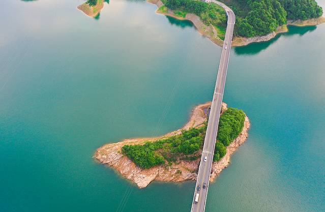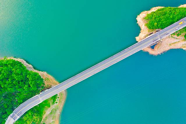 这里是大别山风景道必打卡的景点之一,是自驾旅游打卡的好去处。当车走过这座桥的时候,桥下面有湖水很蓝,景色很美,如果是春天来的时候,还能看到公路两旁的杜鹃花,每当这个季节的时候,自驾前来这里的车就非常的多,说明这里的景色很美,很受到自驾爱好者的喜欢,从空中无人机视角看这座桥真的美不胜收。所以,前来六安自驾的千万别错过了这段最美线路打卡哦。