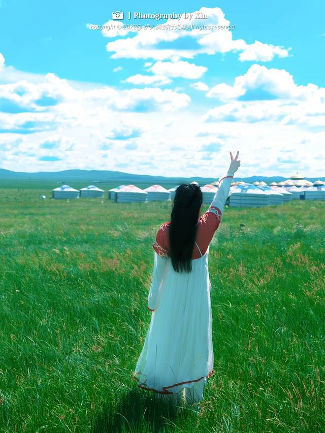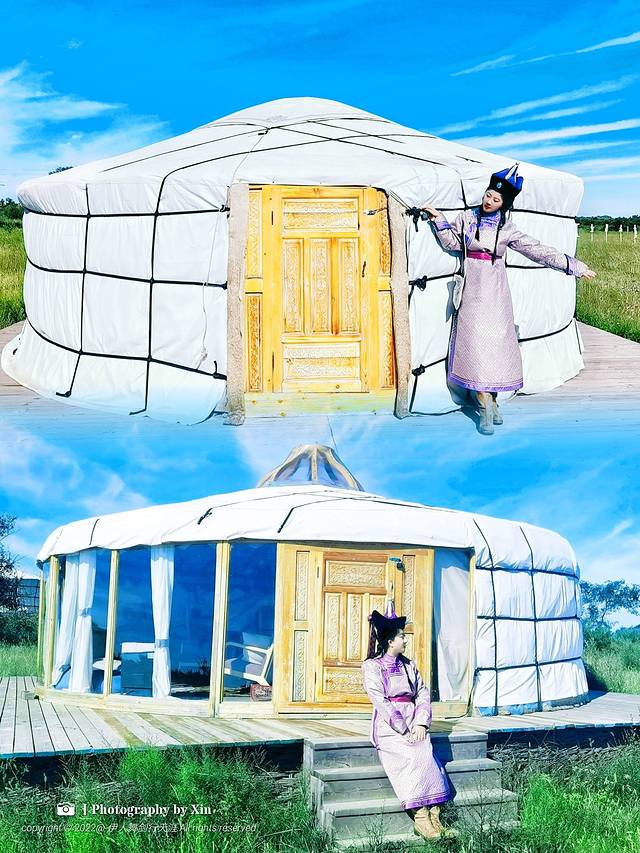在这里我们换装变身后,奔走在这片大草原上,蒙古包前,牛车边,在羊圈里。在这里我们可以完全放空自己,听风声与自然对话,悦马蹄声敲醒大地,看日出日落享受幽静的夜空。