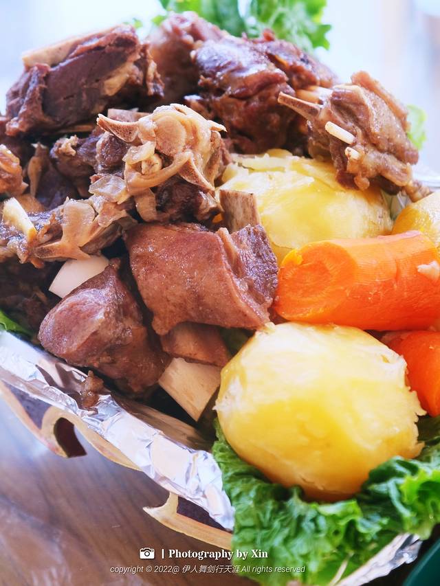 锡林郭勒蒙餐八绝之一。刚出锅的石头烤肉,色泽明艳诱人,炙烤香气扑鼻,牛肉咸香鲜美,油润不腻。吃不同部位的分割下刀要尽量肥瘦相间,一小块入口,油脂的浓香包裹着瘦肉的鲜香,仿佛一场味觉的烟花秀,在口腔里绽放,让人欲罢不止