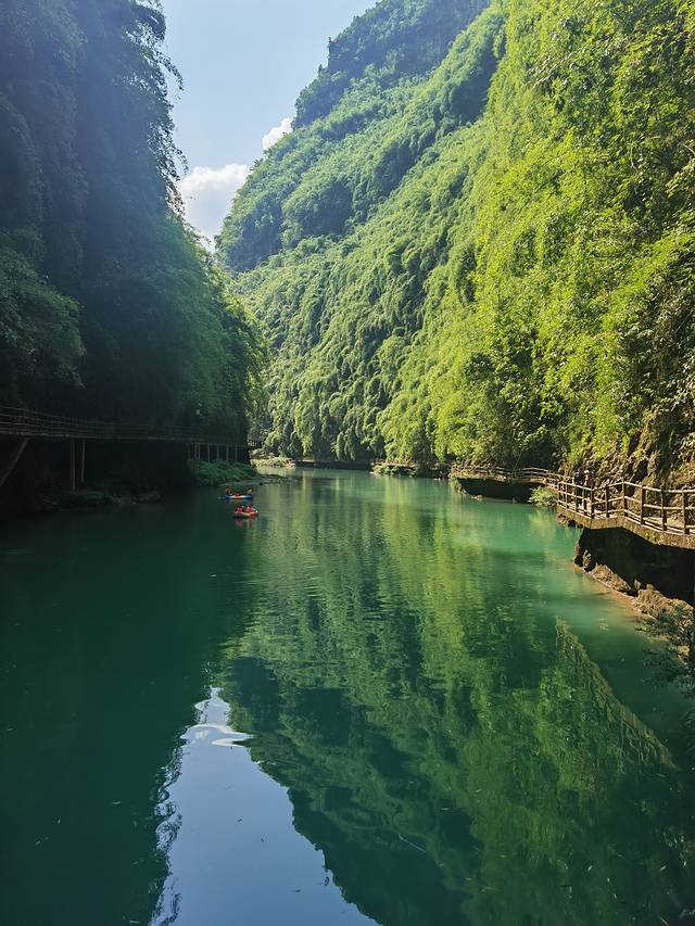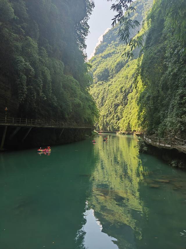 黔江城市大峡谷是AAAA级景区,拥有高达123米的巨幅摩崖观音像和悬空玻璃栈道。景区位于黔江城区,也成就了黔江“东方卢森堡,黔江峡谷城”的美誉。目前开发的游览区不大,一个小时可以往返,60元钱门票感觉太贵,这还不包括玻璃桥和景区环保车,这个景点可以不去。