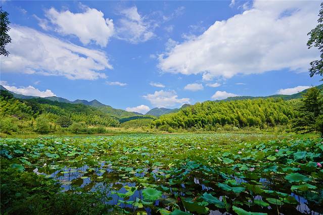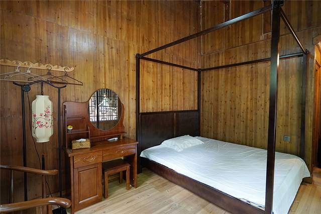 民宿四面环山,竹林摇曳,俨然一个与世隔绝的休闲养生之所。在这里待上个把月,逃离一切烦恼,享受山中寂静的美好生活。房间有大床房,也有标间,洗漱用品都很齐全。民宿外有千年古树群,盛开的荷花池,简直太美了!
