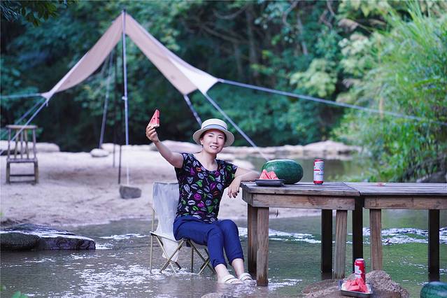 中午溪边烧烤,云灵山让我们实现了久违的溪边烧烤,小溪中搭帐篷,纳凉吃西瓜,竹林里喝啤酒吃烧烤。