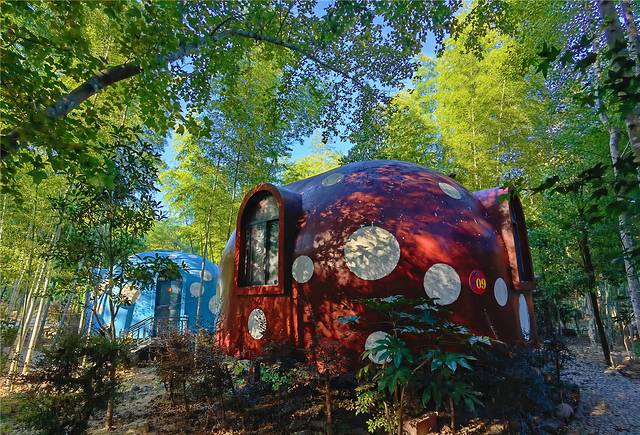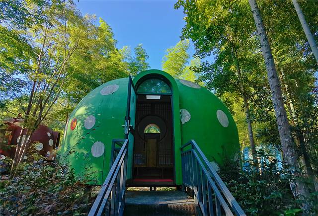 蘑菇屋,小朋友的最爱。五颜六色的各种小蘑菇屋,隐藏在浓密的竹林中,神秘又可爱,很受小姐姐们喜欢。蘑菇屋周围都是竹林,晚上住在这里就像住在迷宫一样,一朵朵可爱的蘑菇就像是丛林中长出的小蘑菇,从蘑菇屋的窗户可以与旁边的邻居对话,就像穿越到童话世界一样,是不是很有意思啊!孩子们也可以在这里捉迷藏,找起来可不容易哦!房间里面是榻榻米,可以一家人在一起开心过暑假,晚上还可以透过竹林看到满天繁星。