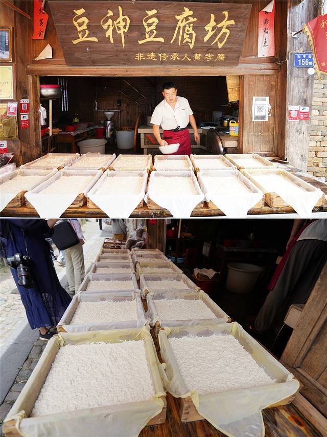 和平古镇是一个全国罕见的城堡式大村镇,距今已有千年历史,村子里保留了完整的古街巷和古建筑,历史文化积淀深厚,许多传统民俗都传承下来,有傩舞表演、三角戏、民间曲艺、节俗、婚俗以及游浆豆腐、织造腰机布等等。和平游浆豆腐的制作工艺堪称中国一绝,到这里必须吃一碗再走。午饭在和平饭店品尝豆腐宴。饭店就在古镇外的和平文创园,非常好找。