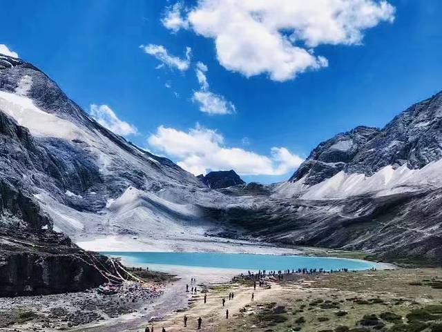 亚丁分长线和短线,我们第一天走了短线,第二天走的长线。虽然很辛苦,但是当看到这些神圣景点后,所有的辛苦都是值得。五色海又名“丹增错”,是亚丁最高的湖。因光折射可以看到水面五颜六色因此而得名。看到海的那一刹,世间所有烦恼烟消云散。