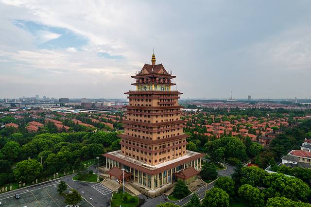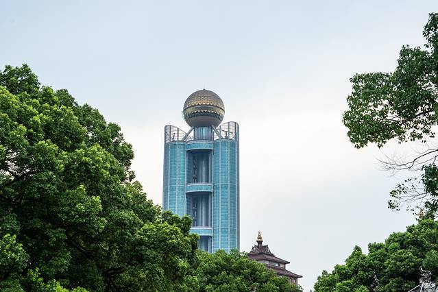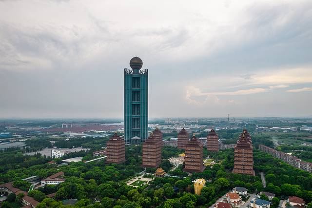 金塔的顶楼是观光层,站在塔上可以俯瞰华西村的全貌。总共是17层,高98米。