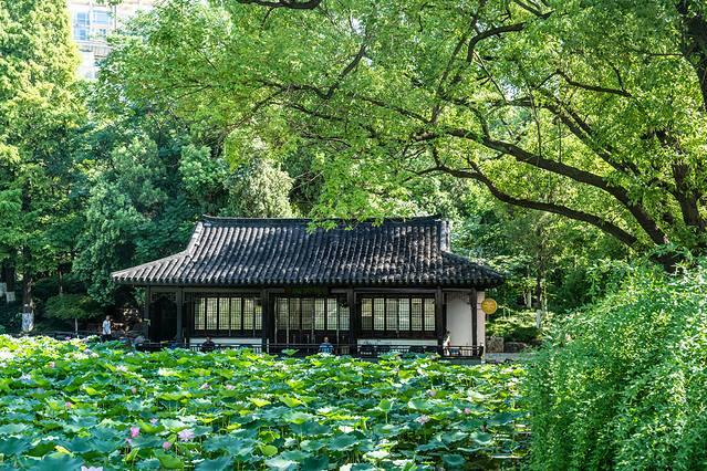 中山公园里由孙中山先生的纪念塔,也有纪念堂,这里环境优美,绿树成荫,荷花也正开得美艳。