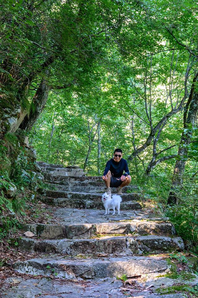 居然还有游客带了一只狗狗来爬山的不知道它是否能够登顶?不管这么多,我先合影一张!